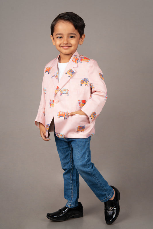 Sold outPowder Pink Elephant Printed Coat