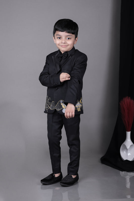 Black Tuxedo With Cheetah Embroidery/shirt Pant With Bow Tie Set