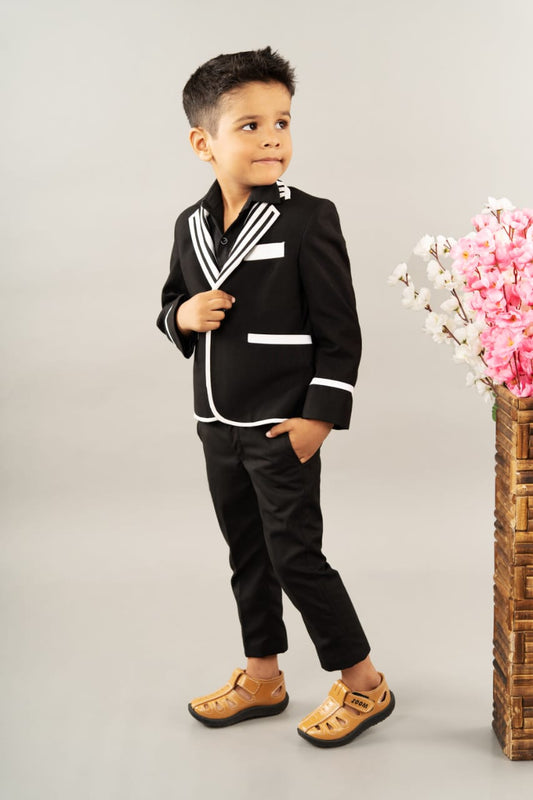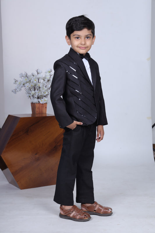 Black Tuxedo With Stylish Panel/ Shirt Pant With Bowtie Set