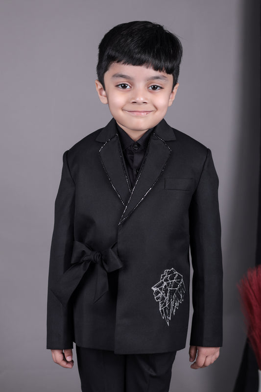 Black Knot Side Blazer With Hand Embroidered With Pant Set