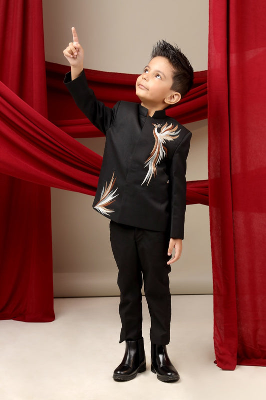Black Prince Coat Phoenix Multicolour Embroidery With Pant Set