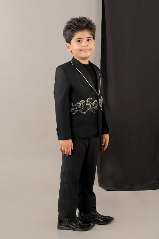 Black Horse Embroidery Blazer With Pant Set