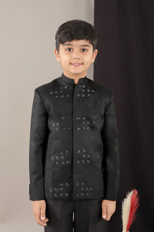 Black Stones Hand Embroidery Prince Coat With Pant Set