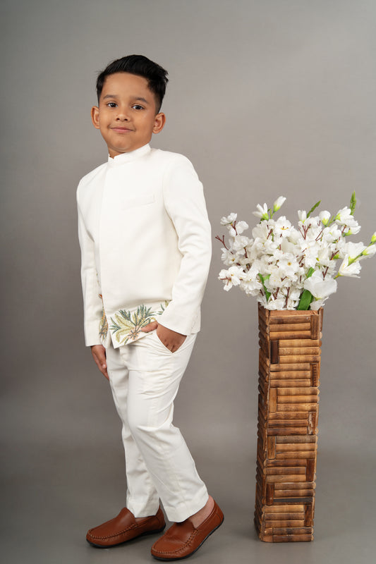 Ivory Bandgala With Cheetah Embroidered With Pant Set