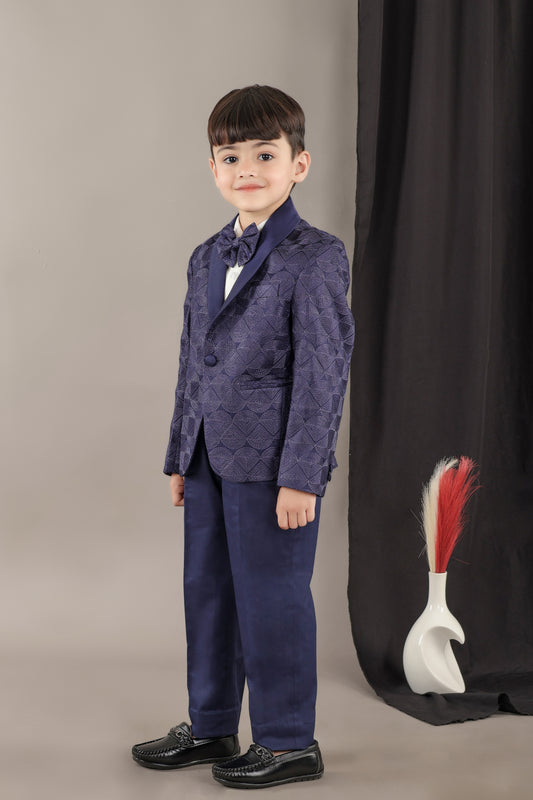 Navy Blue Heavy Embroidery Tuxedo With Shirt/Pant With Bow Tie Set