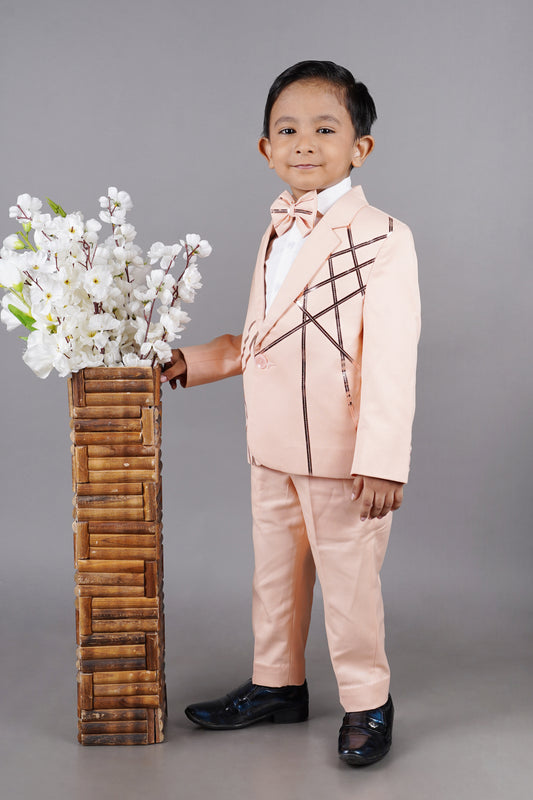 Pink Stylish Stripe Panel Suit/Shirt/Pant With Bow Tie Set