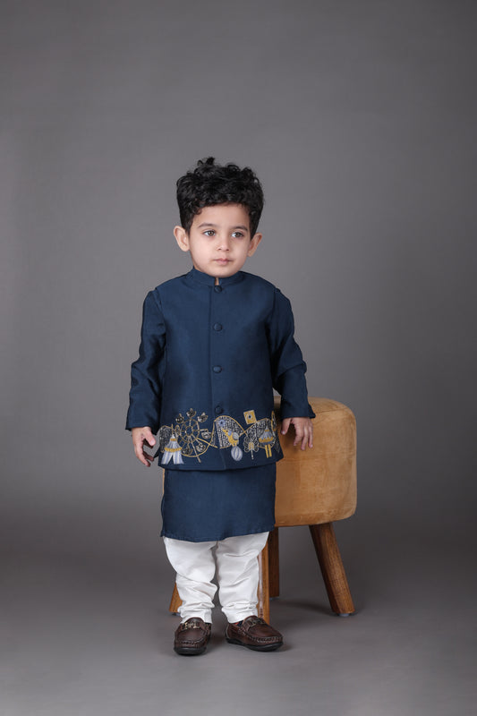 Blue Kurta With Carnival Hand Embroidery Bandhgala And Pajama Set