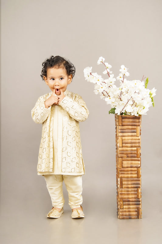 Fawn Embroidered Attached Jacket Kurta Set