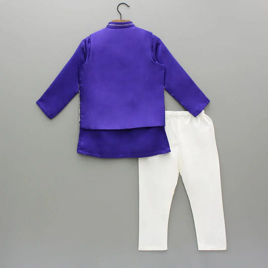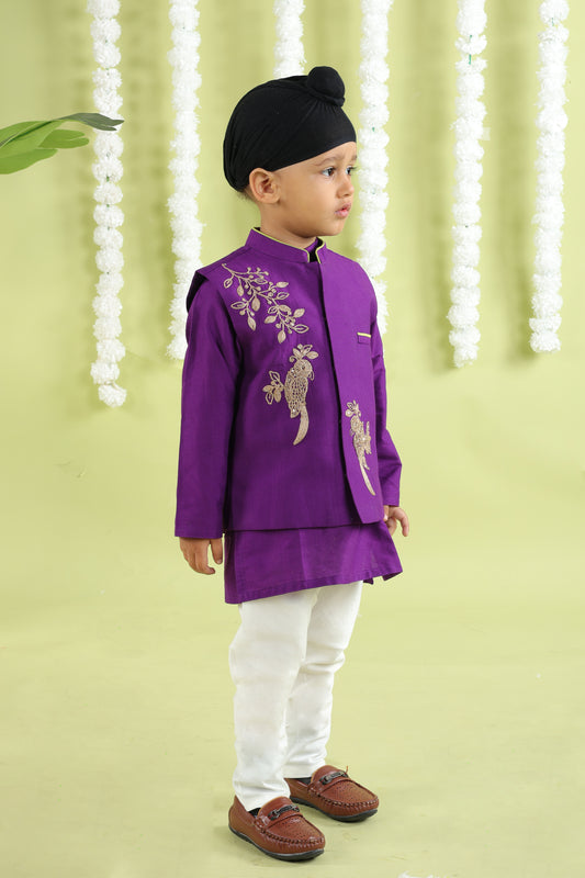 Purple Kurta With Embroidered Open Jacket With Bottom Set