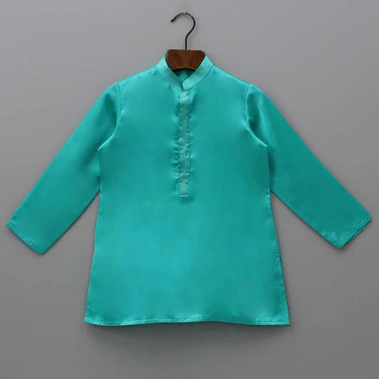 Peacock Green Kurta With Embroidered Open Jacket With Hand With Bottom Set