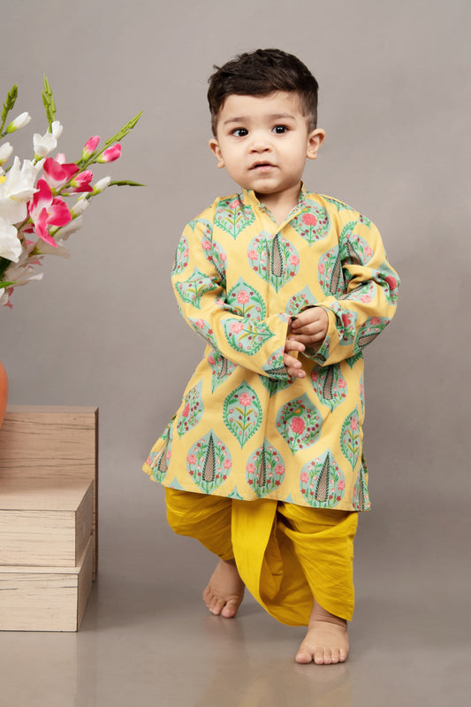 Mustard Yellow Traditional Printed Kurta With Dhoti Set