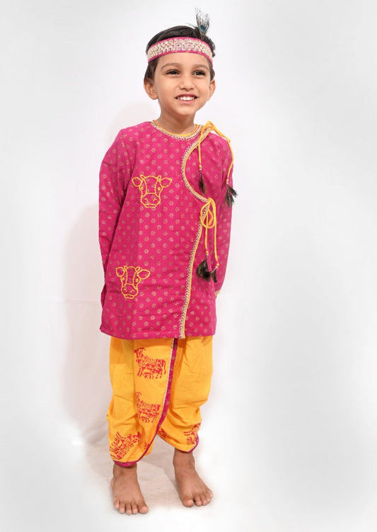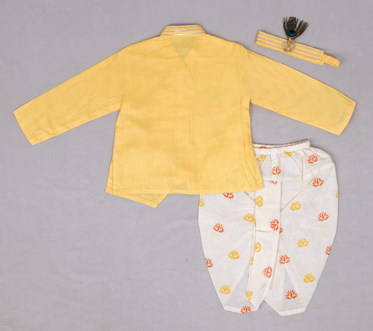 Yellow Embroidered Kurta With Printed Dhoti For Krishna Dress
