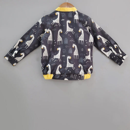 Black Giraffe Print Bomber Jacket Unisex