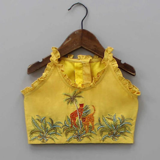 Cheetah Hand Embroidered Yellow Ghagara Set
