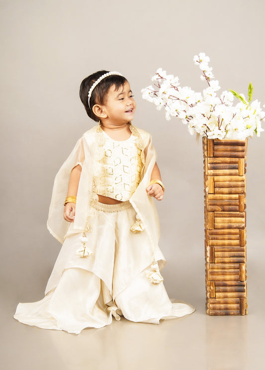 Fawn Embroidered Blouse With Cape With Ghagara Set