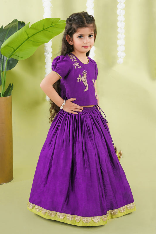 Purple Ghagara With Bird Cord Embroidery Blouse Set