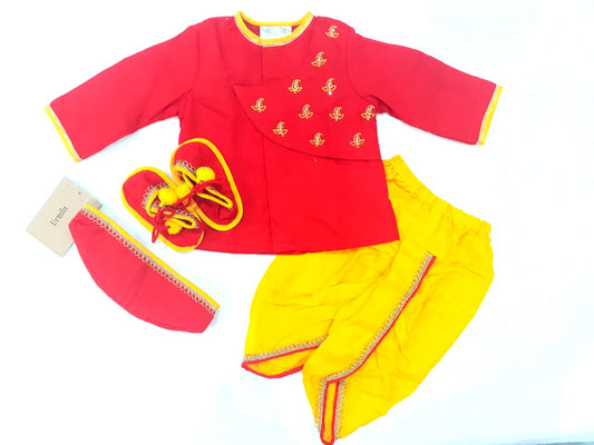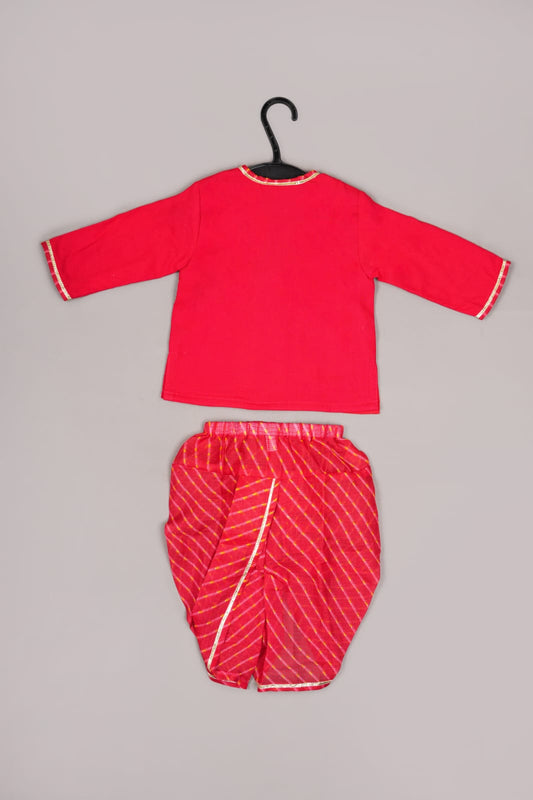 Jamana Boy Red With Flower Gota Hand Embroidery With Lehariya Dhoti Set