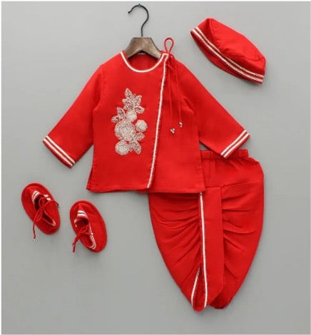 Jamana Boy Red With Gota Hand Embroidery With Dhoti Set