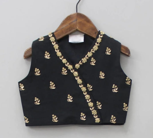 Black Ikkat Print Heavy Hand Embroidered Blouse With Ghagara Set