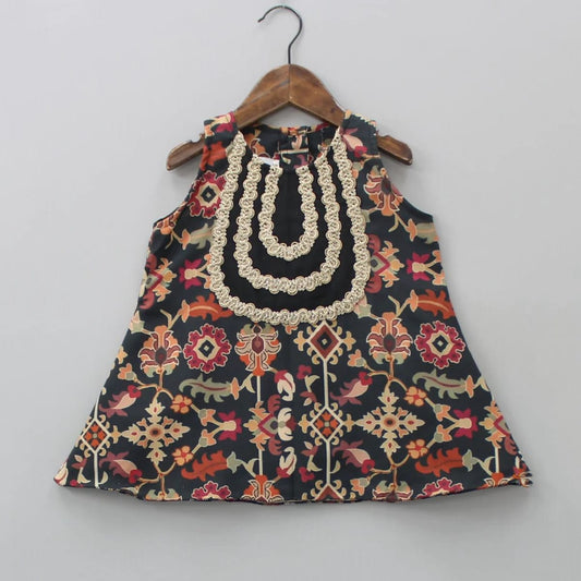 Black Ikkat Print Top With Sharara Set With Duppata