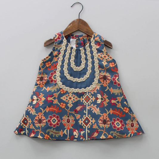 Sapphire Blue Ikkat Print Top With Sharara Set With Duppata