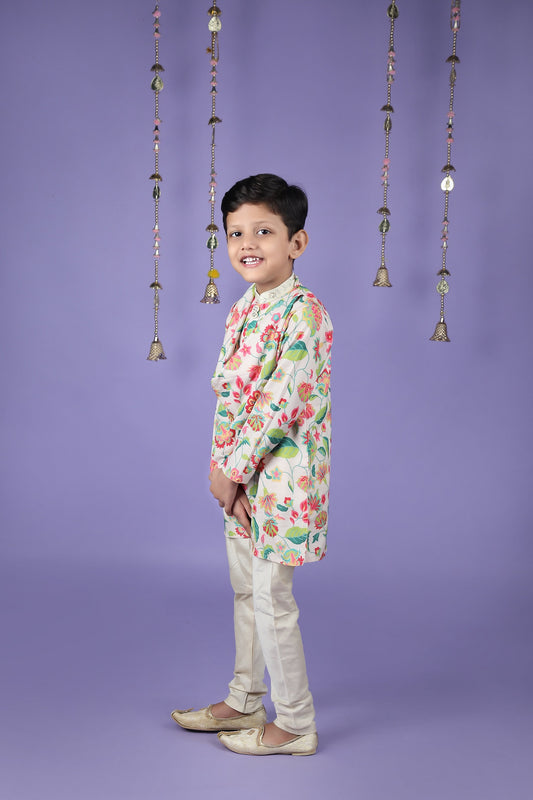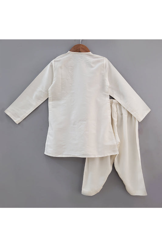White Holi/Dhoon Boy Set With Colourful Embroidery With Salwar Pant