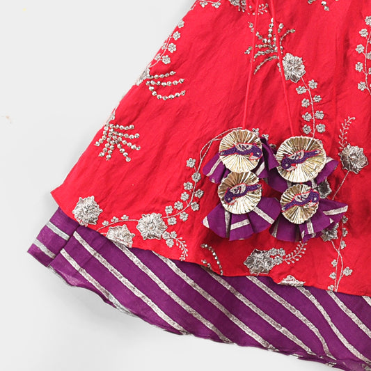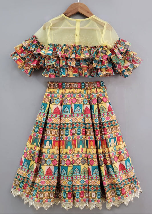 Multi Colour Multi Layer Frill Blouse With Multi Colour Ghagara