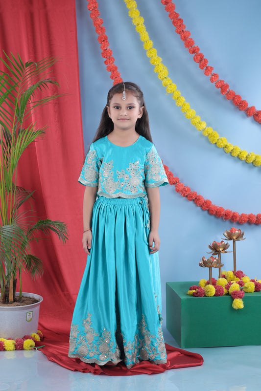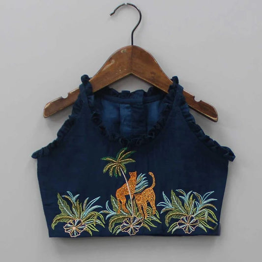 Cheetah Hand Embroidered Blue Ghagara Set