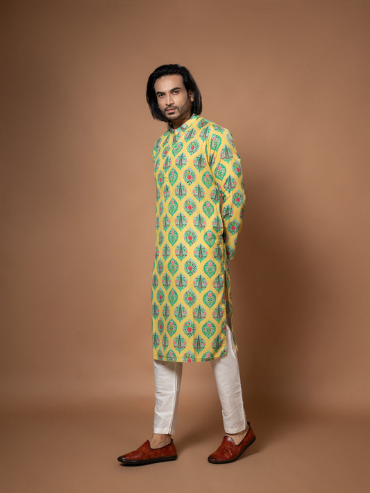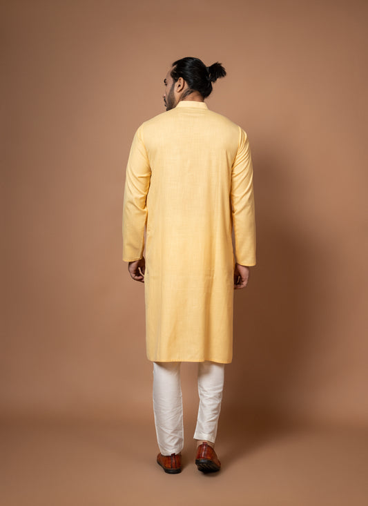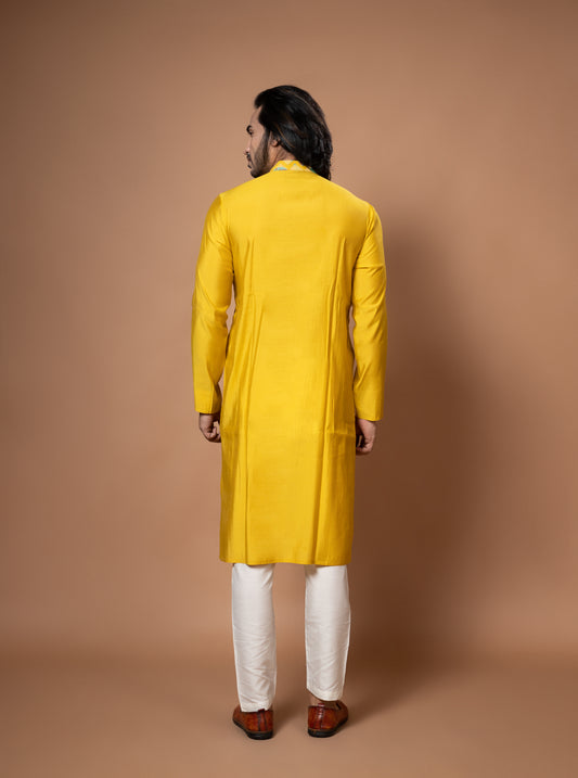 Mustard Yellow Kurta With Applique Work Pajamna Set