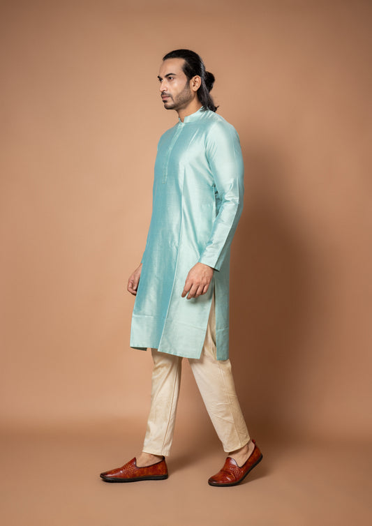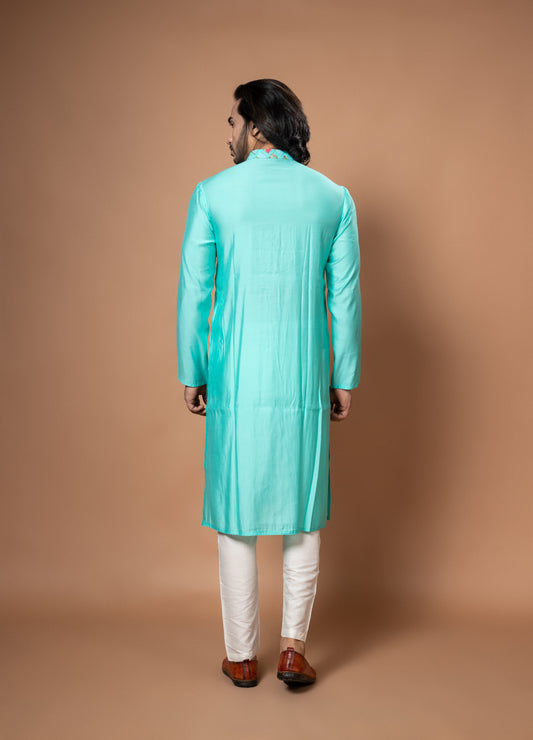 Aqua Blue Kurta With Applique Work Pajamna Set