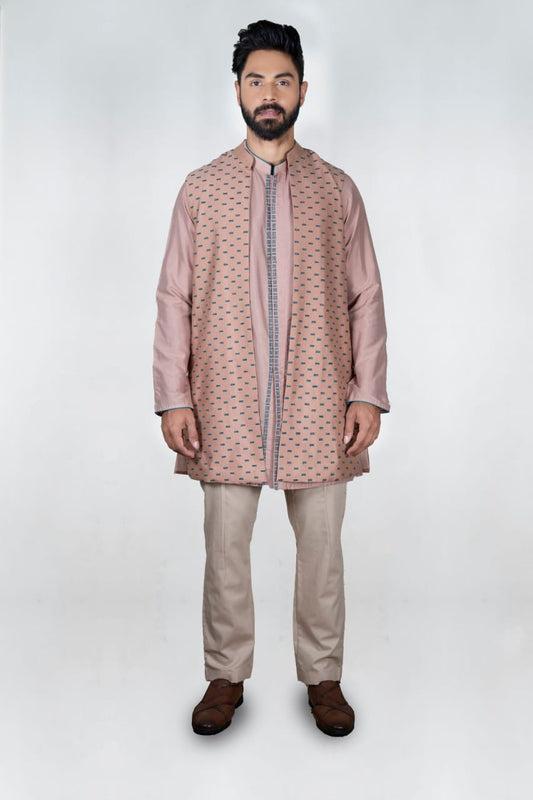 Onion Pink Embroidered Jacket Kurta Set