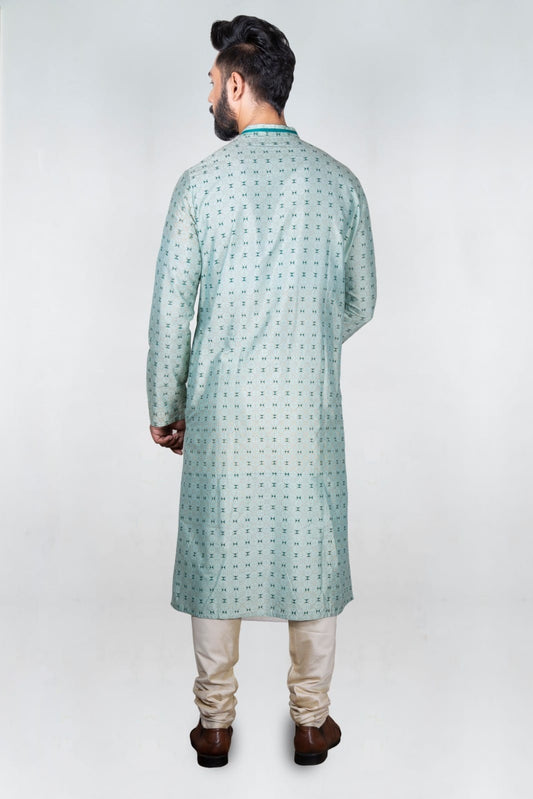 Aqua Blue Printed Embroidered Kurta Set