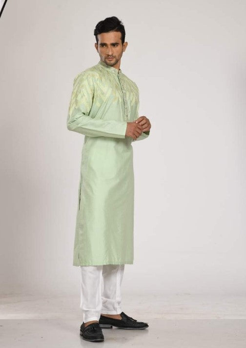 Kurta With Leaf Embroidery On The Yoke And Hand With Chhuridar