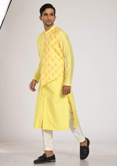Yellow Flap Kurta With Embroidery With Chus Pajama