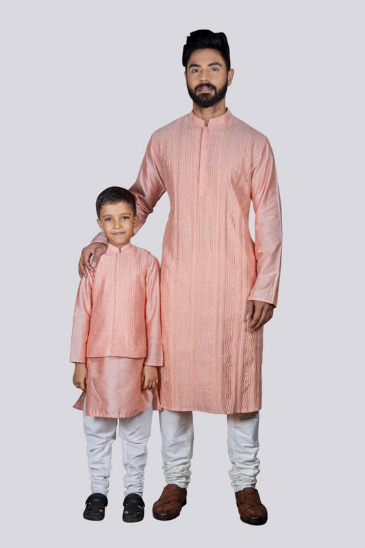 Pink Kurta With Stiched Detaled Nehru Jacket With Churidar