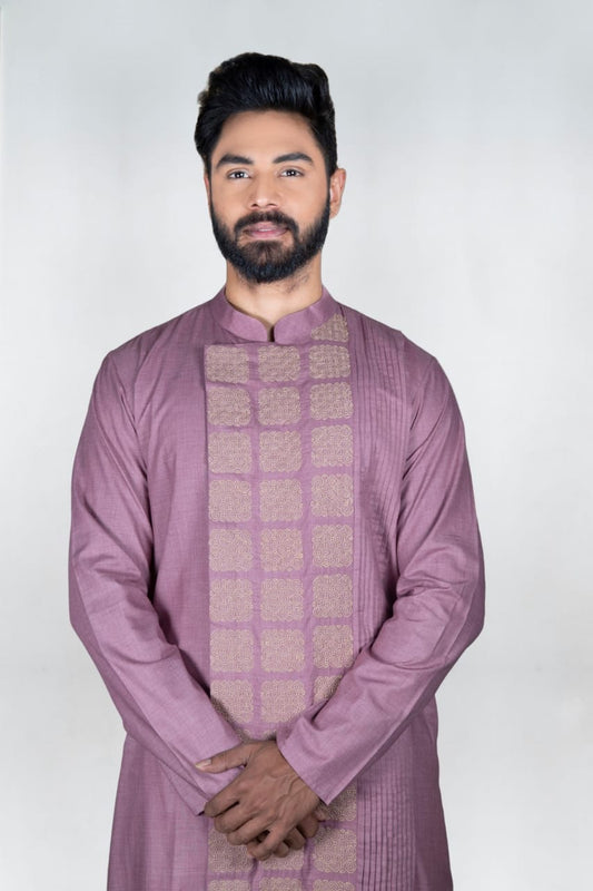 Cotton Khadi Kurta With Box Embroidery On The Yoke With Churidar