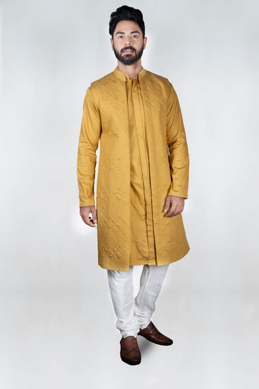 Mustard Goggles Embroidery With Pintux Kurta Set