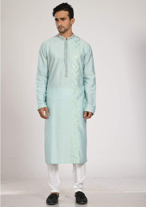 Aqua Blue Hand Embroidered Applique Kurta With Churidar