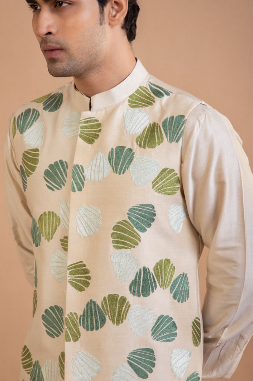 Beige Quirky Embroidered Bundi