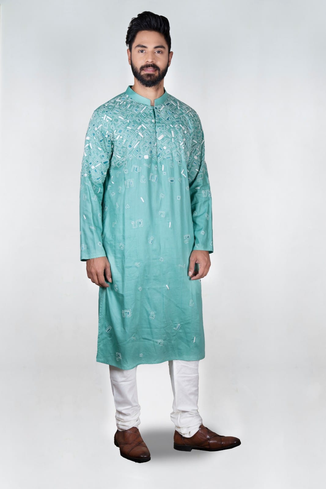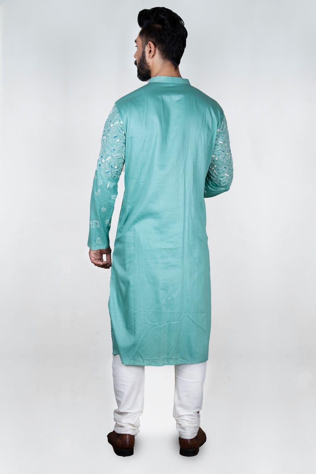 Dark Aqua Blue Geometrical Cord Embroidered Kurta Set