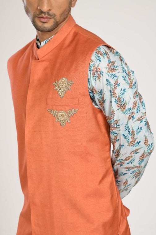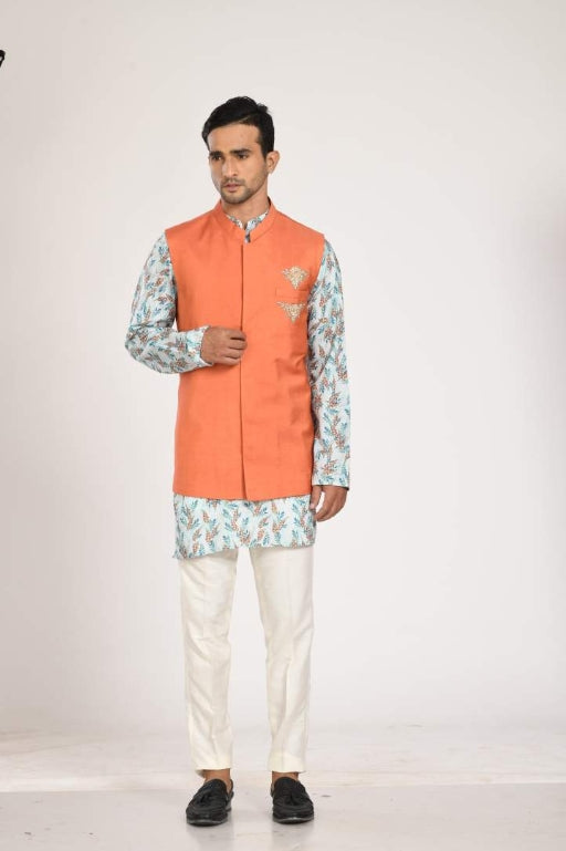 Printed Kurta/With Pant/Bundi With Zardosi Embrodery On The Pocket