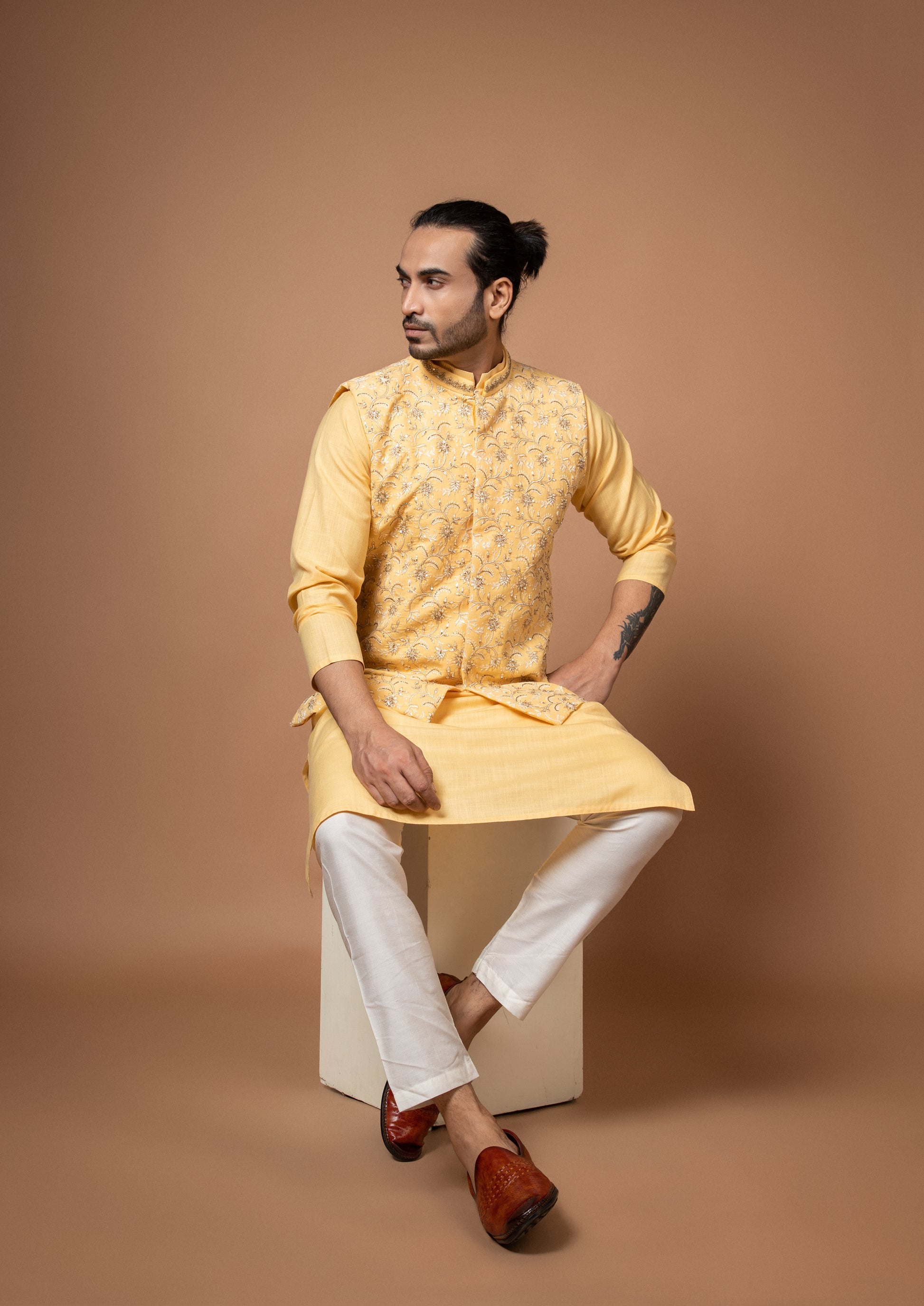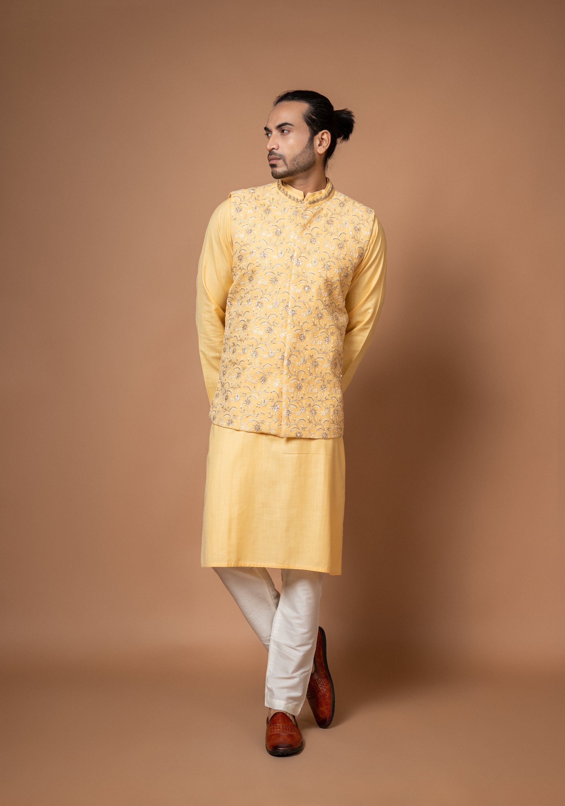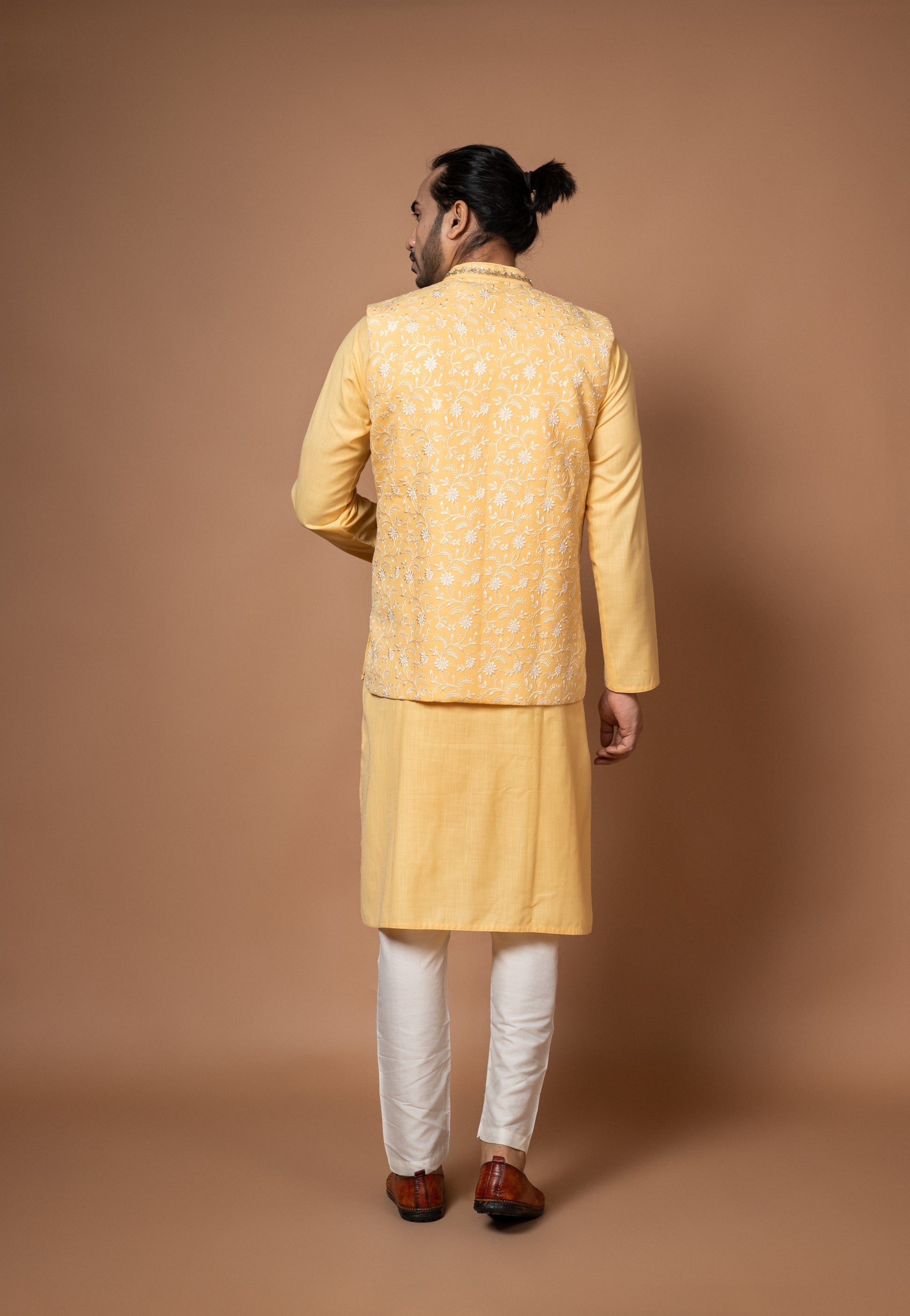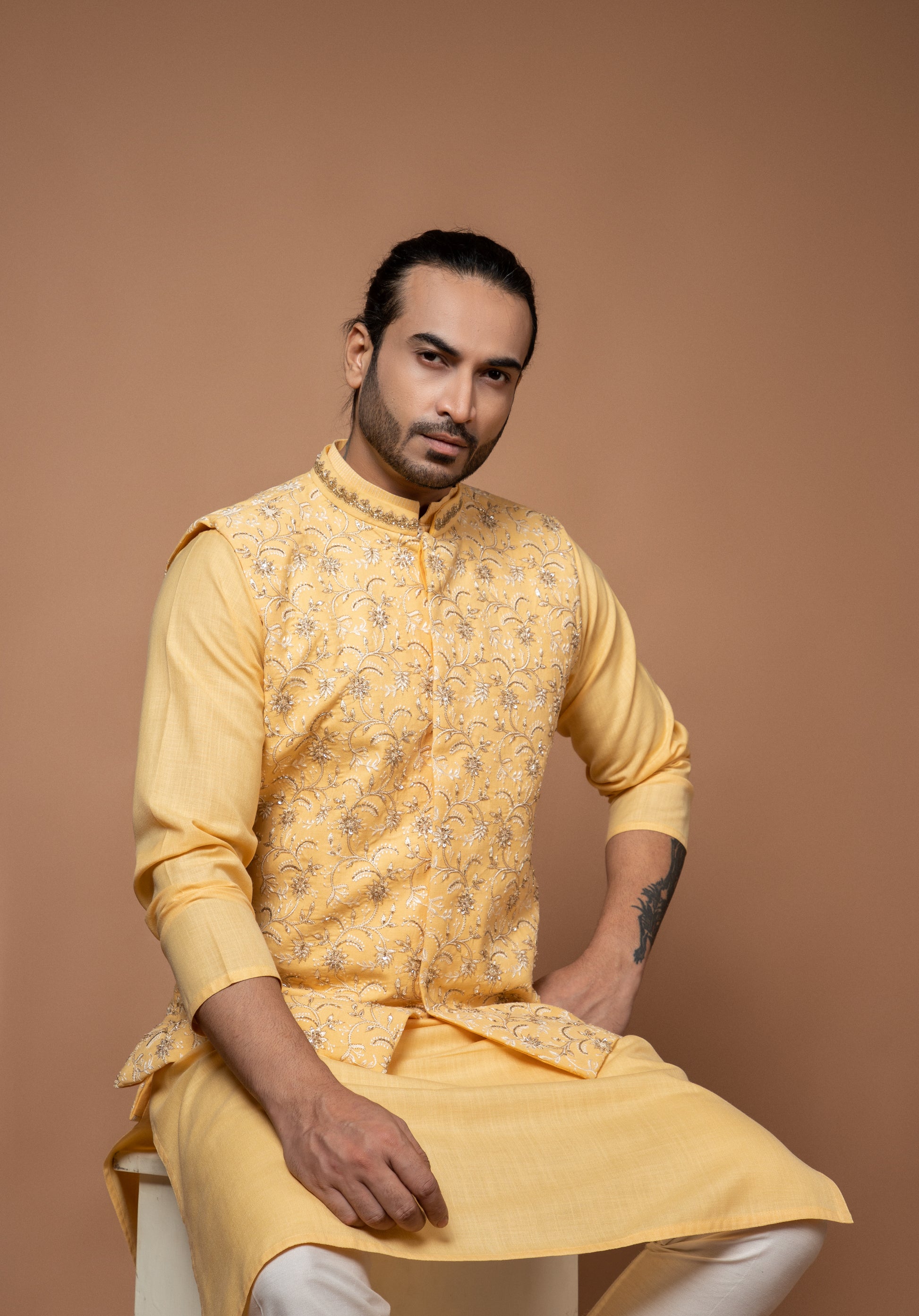 Lemon Yellow Heavy Thread And Zardosi Embroidery Bundi