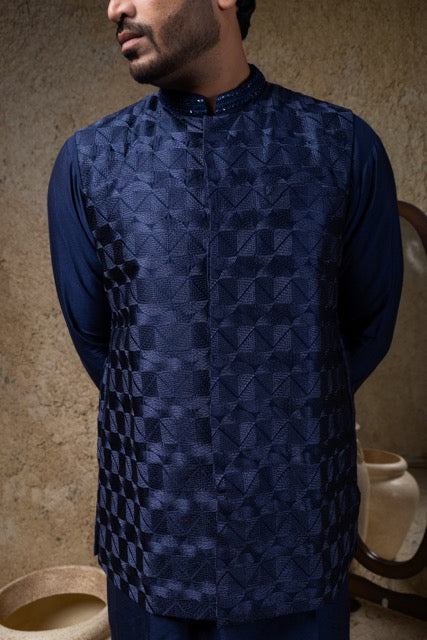 HEAVY EMBROIDERED ON FRONT AND BACK OF BUNDI JACKET