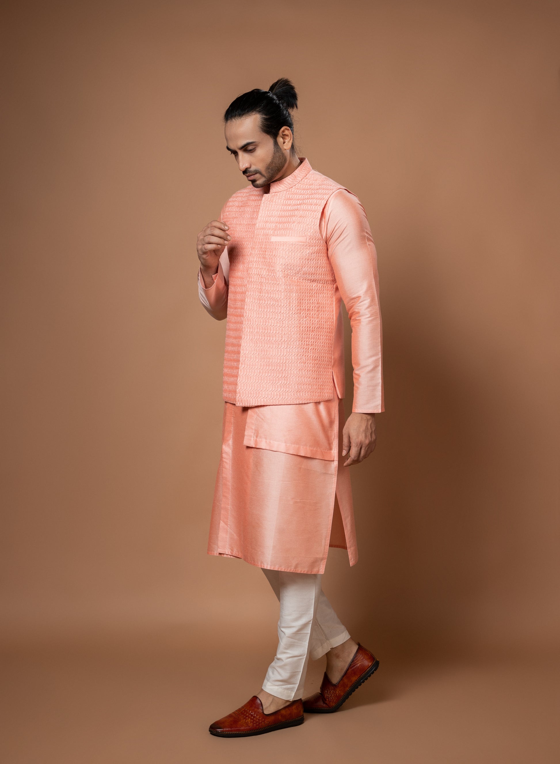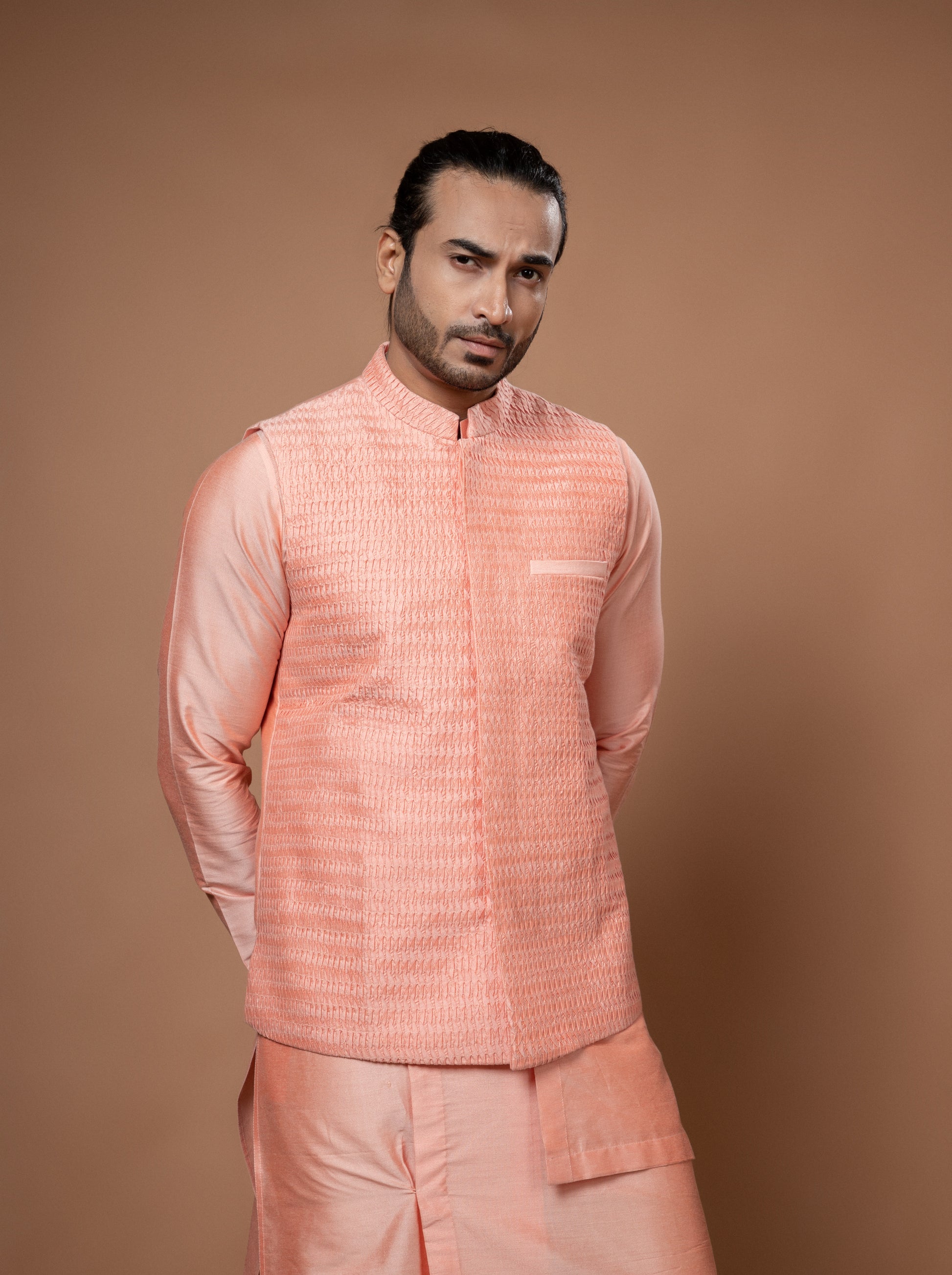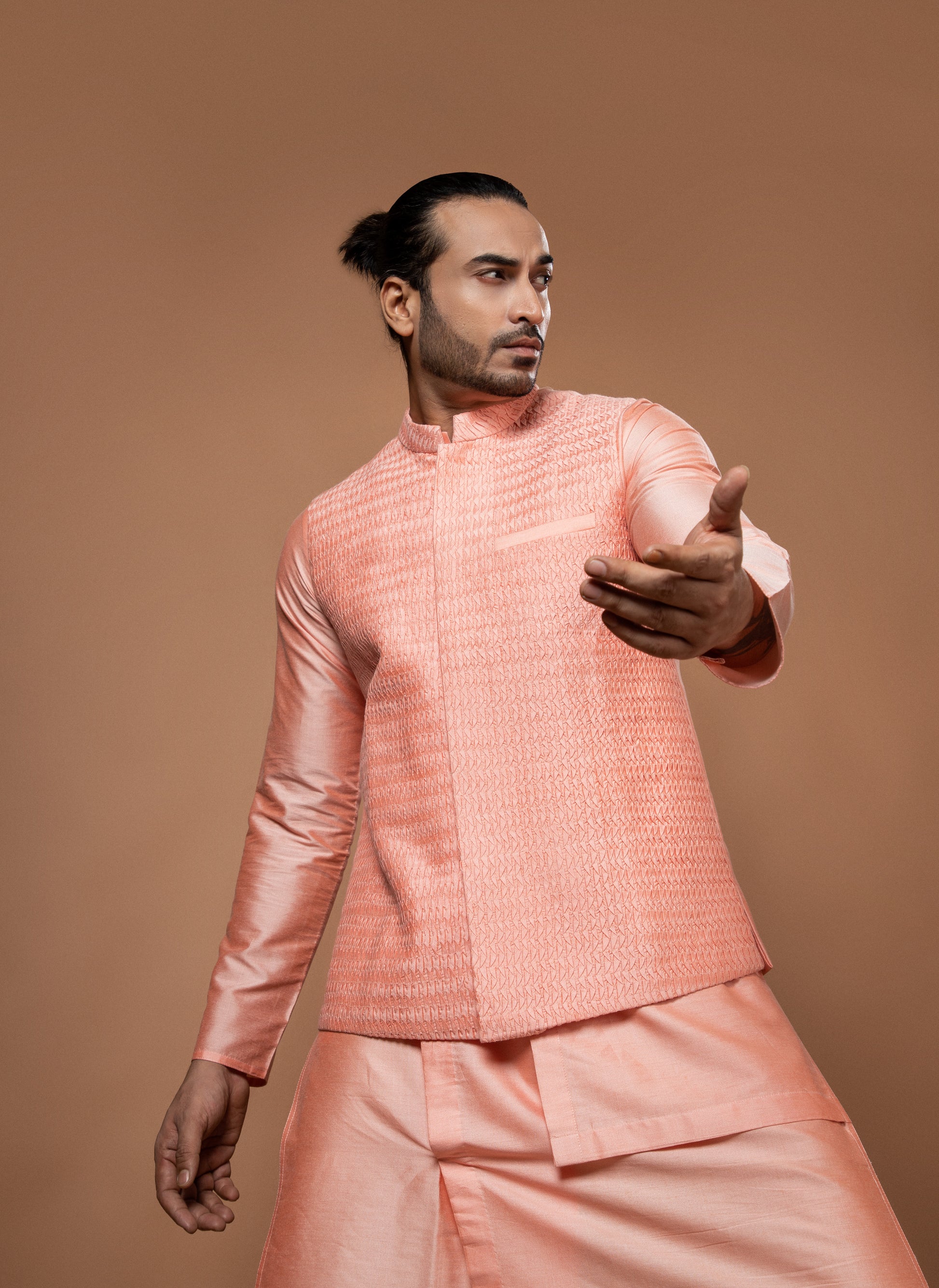 Pink Heavy Pintux And Embroidered Bundi