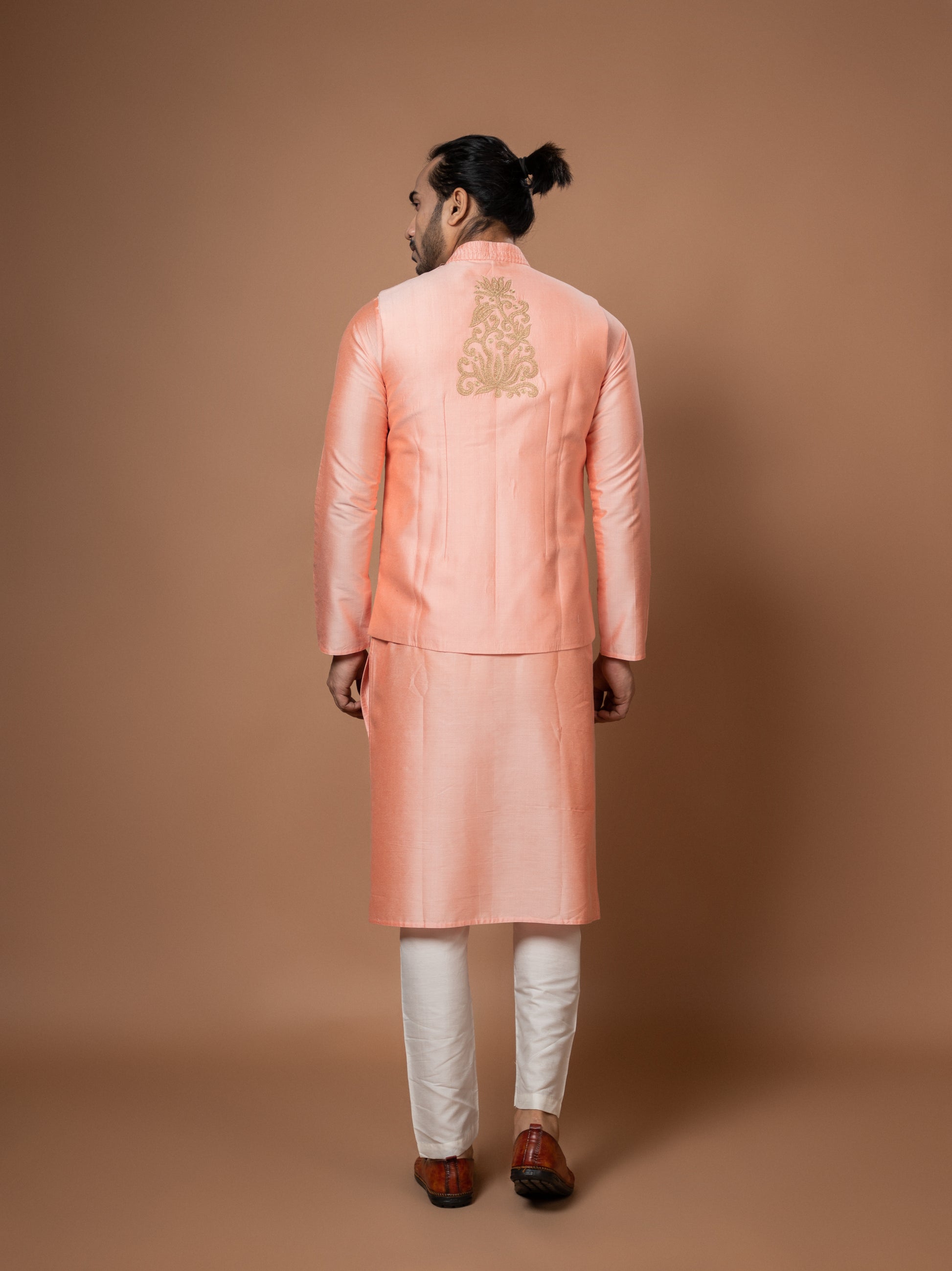 HEAVY LOTPOT PINTUX IN FRONT OF BUNDI, ZARI EMBROIDERED BOOTA AT BACK OF BUNDI