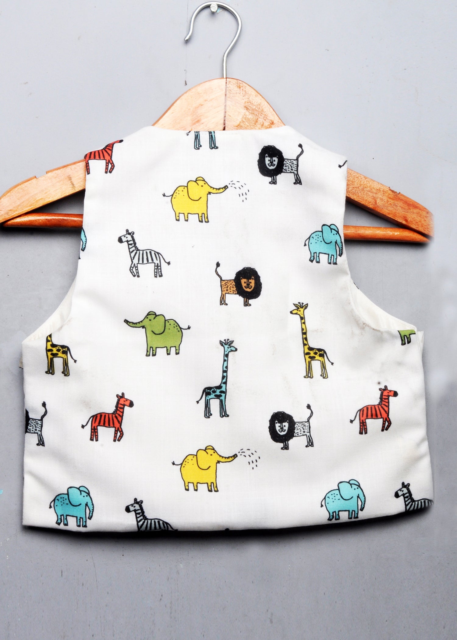 ANIMAL PRINTED WAIST COAT, MATCHING BUTTONS