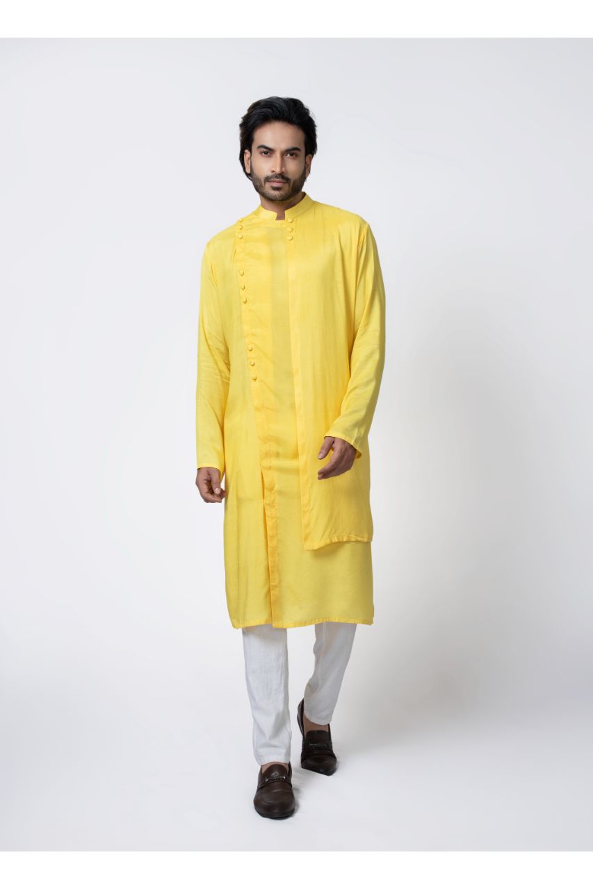 Yellow Layer Stylish Kurta Pajama Set
